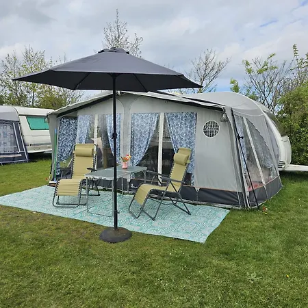 Caravan Met Voortent En Bijzettentje
