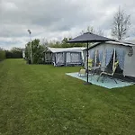 Situé à moins de 2 km de Strand, Hotel Caravan Met Voortent En Bijzettentje dispose d'une terrasse avec une vue sur le jardin.