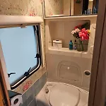 Dans les propriétés Hotel Caravan Met Voortent En Bijzettentje, vous pourrez profiter d'un coin salon et d'un espace de repas et utiliser des installations multimédias telles qu'une TV et une TV à écran plat avec des chaînes satellite. Les salles de bains comprennent également des toilettes séparées et une douche. Les salles de bains disposent également d'un sèche-cheveux pour plus de confort.